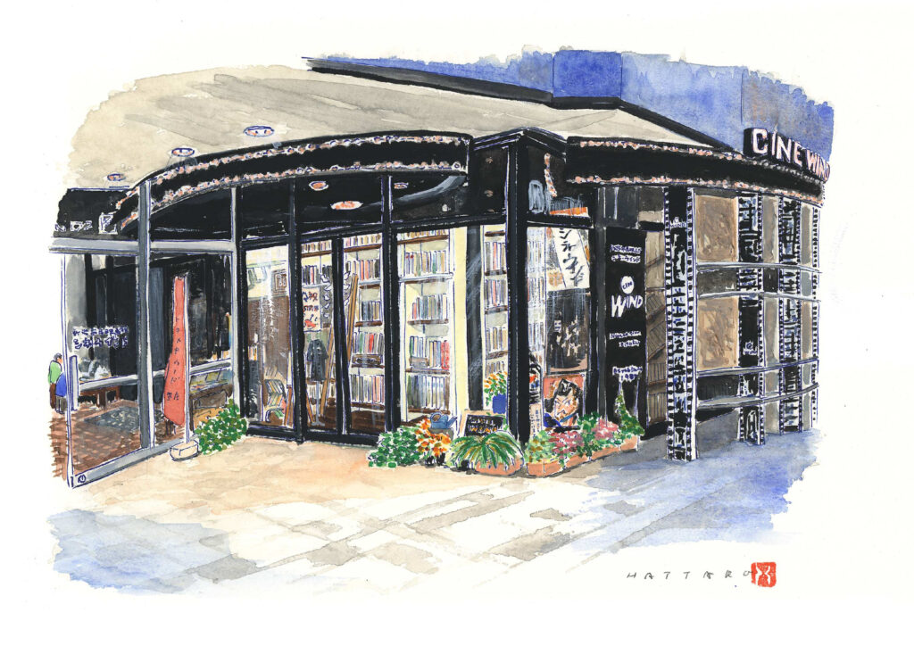 2020年11月に、全国のミニシアターを紹介する番組、WOWOW「W座を訪ねて~信濃八太郎が行く~」でシネ・ウインドに取材にいらしたイラストレーターの信濃八太郎さん。番組をご覧になった方も多いことでしょう。現在、劇場受付の後ろに信濃さんが描いたシネ・ウインドの外観図を展示しています。その作品でポストカードや36周年祭のポスター・チラシを作らせていただくやり取りの中で、信濃さんよりお寄せいただいたエッセイを誌面でご紹介。お人柄の伝わるあたたかい文章です。