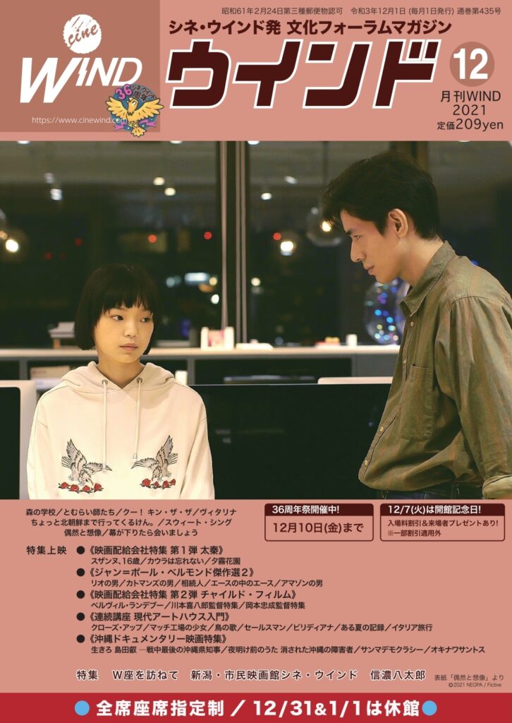 表紙は、「ドライブ・マイ・カー」で第74回カンヌ国際映画祭脚本賞などを受賞した濱口竜介監督による、“偶然”をテーマにした3つの短編からなるオムニバス映画「偶然と想像」(12/18~1/7上映 ※火曜・12/31・1/1休館)。軽快な物語の始まり、日常の対話から一転、鳥肌が立つような緊張感とともに引き出される人間の本性、切り取られる人生の一瞬…。驚きと戸惑いの映画体験が、いま始まる―。第71回ベルリン国際映画祭にて銀熊賞(審査員グランプリ)受賞。