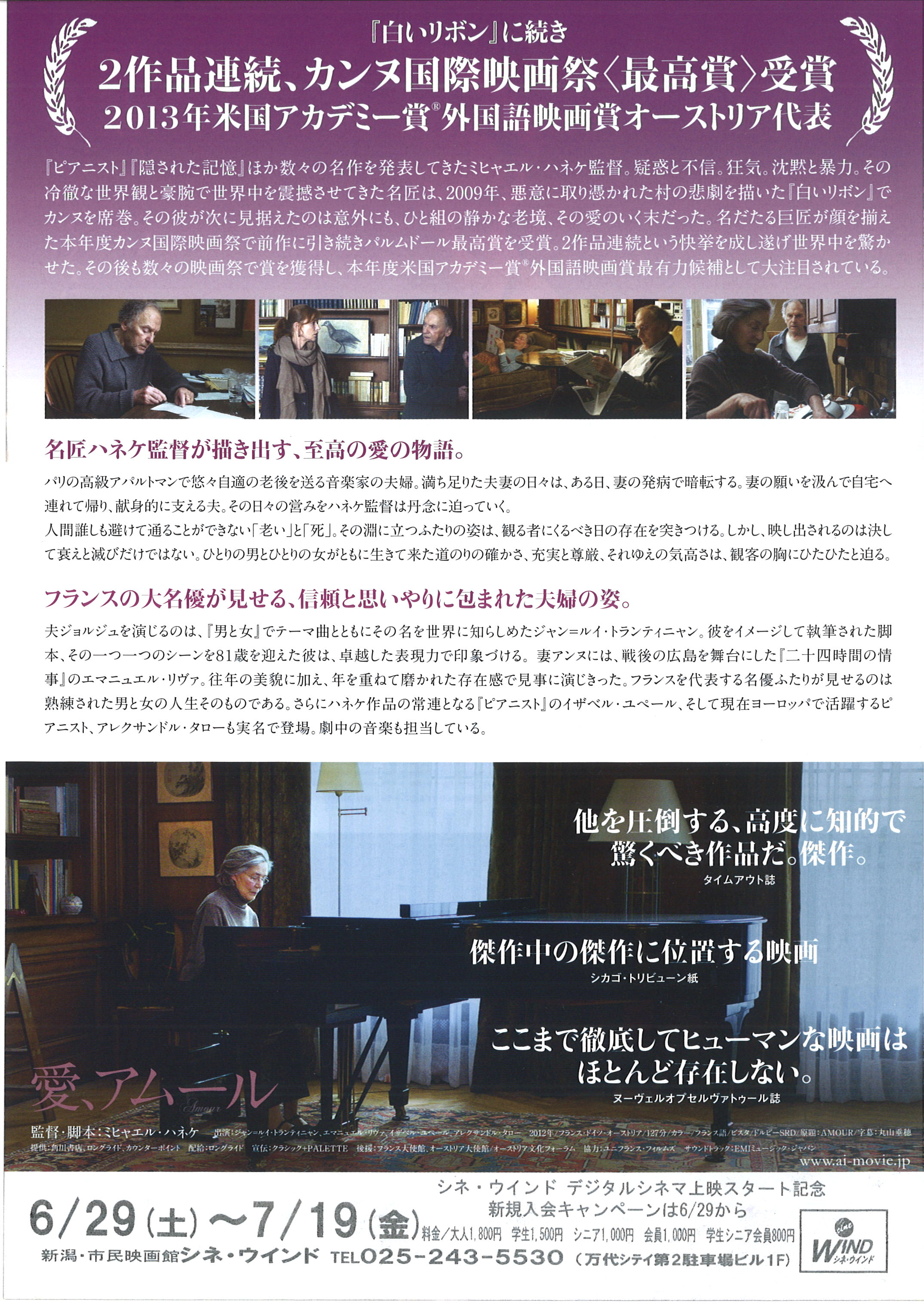 さて、6/29から上映の、「愛、アムール」 公式ホームページはこちら→ http://www.ai-movie.jp/