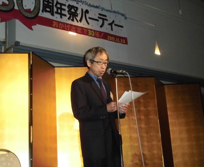 シネ・ウインド座付き詩人・鈴木良一さんによる30年記念の自作詩朗読からスタートしたパーティーは、華やかなかにもアットホームな雰囲気をたたえつつ、大いに盛り上がりました。