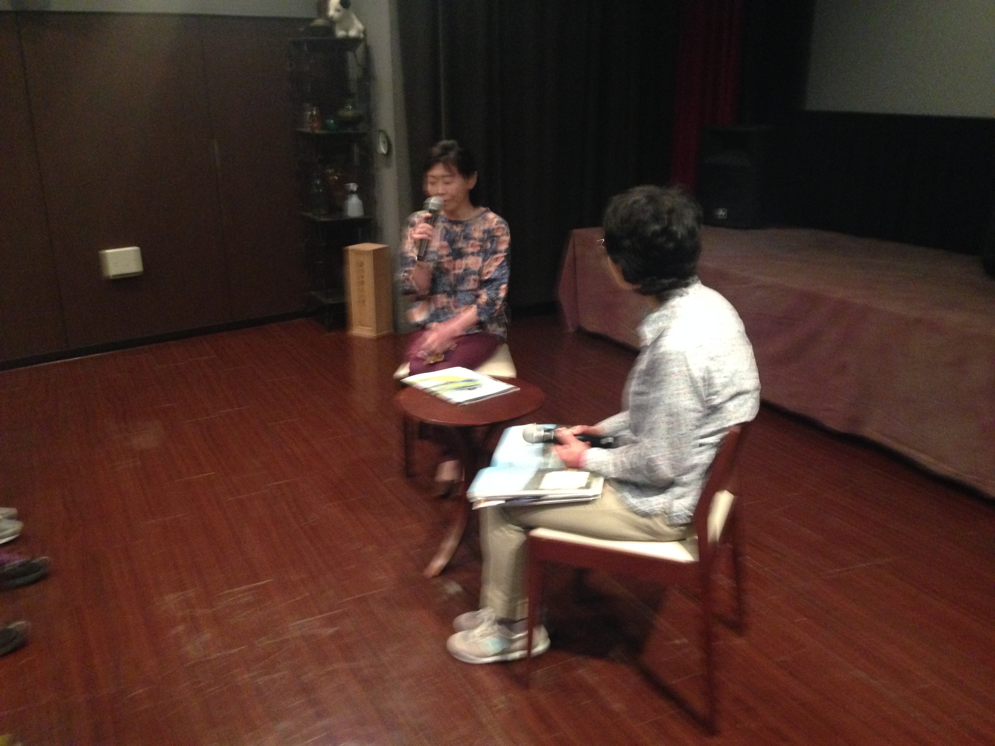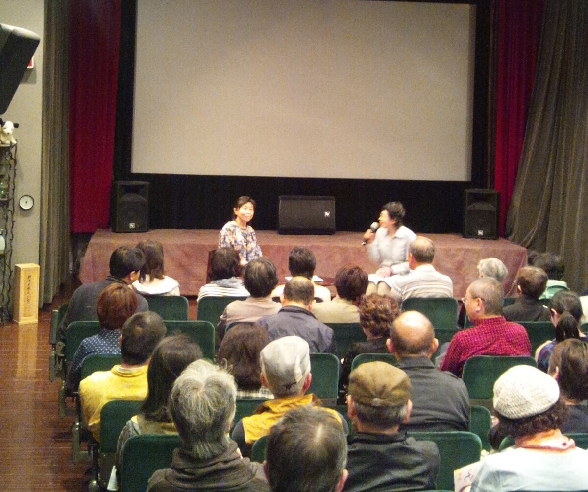 ↑玉木有紀子さんと司会の松井まゆみさん(シネ・ウインドボランティアスタッフ)