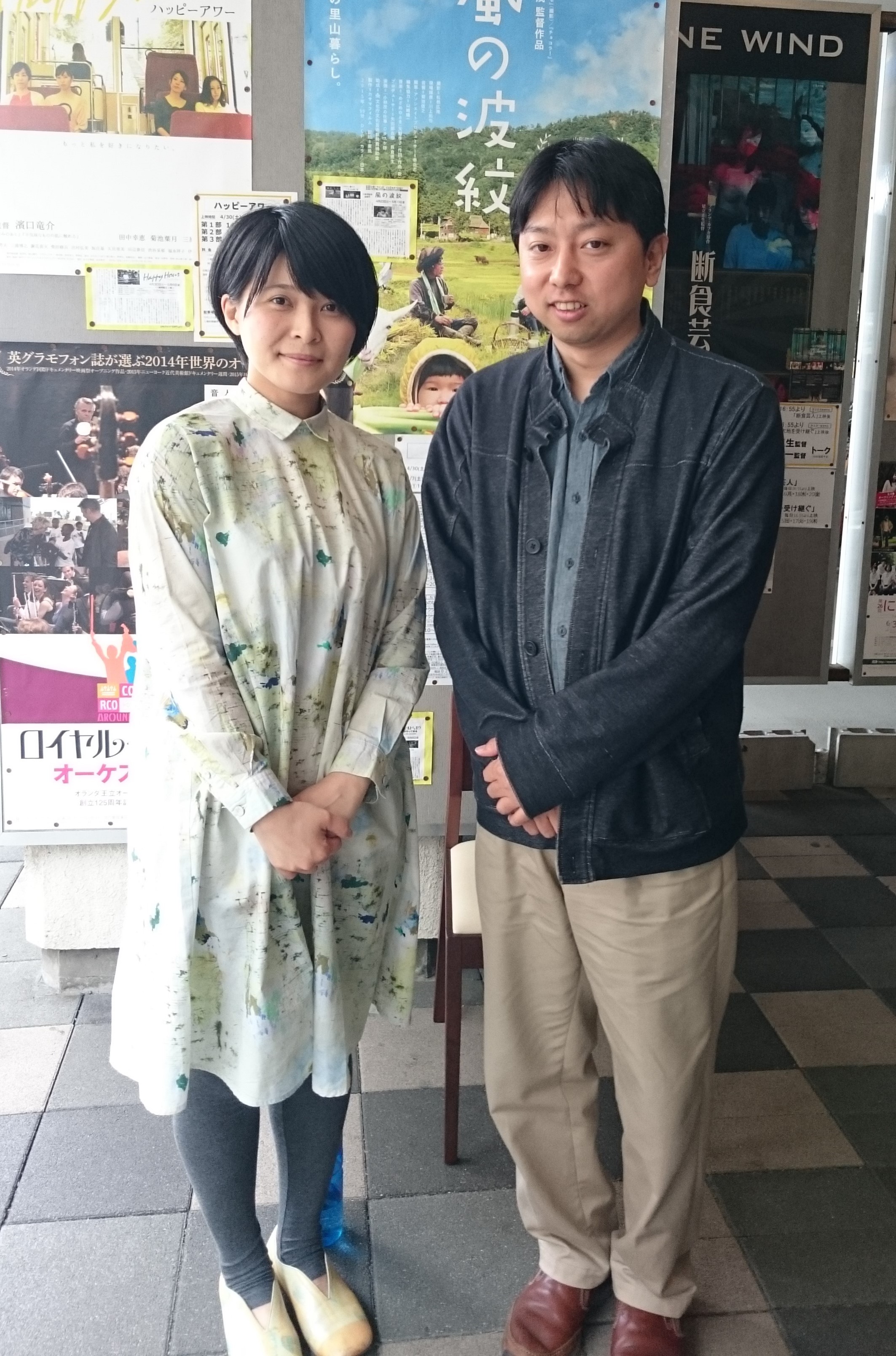 ↑秦岳志さん(「風の波紋」編集・アソシエイトプロデューサー)_(写真左)と、川上拓也さん(現場録音)も前日に引き続き来館、舞台挨拶をしていただきました。