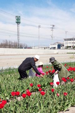 チューリップの球根栽培日本一の新潟で、育成のために捨てられてしまうチューリップの花を使って街を飾る活動をしています。