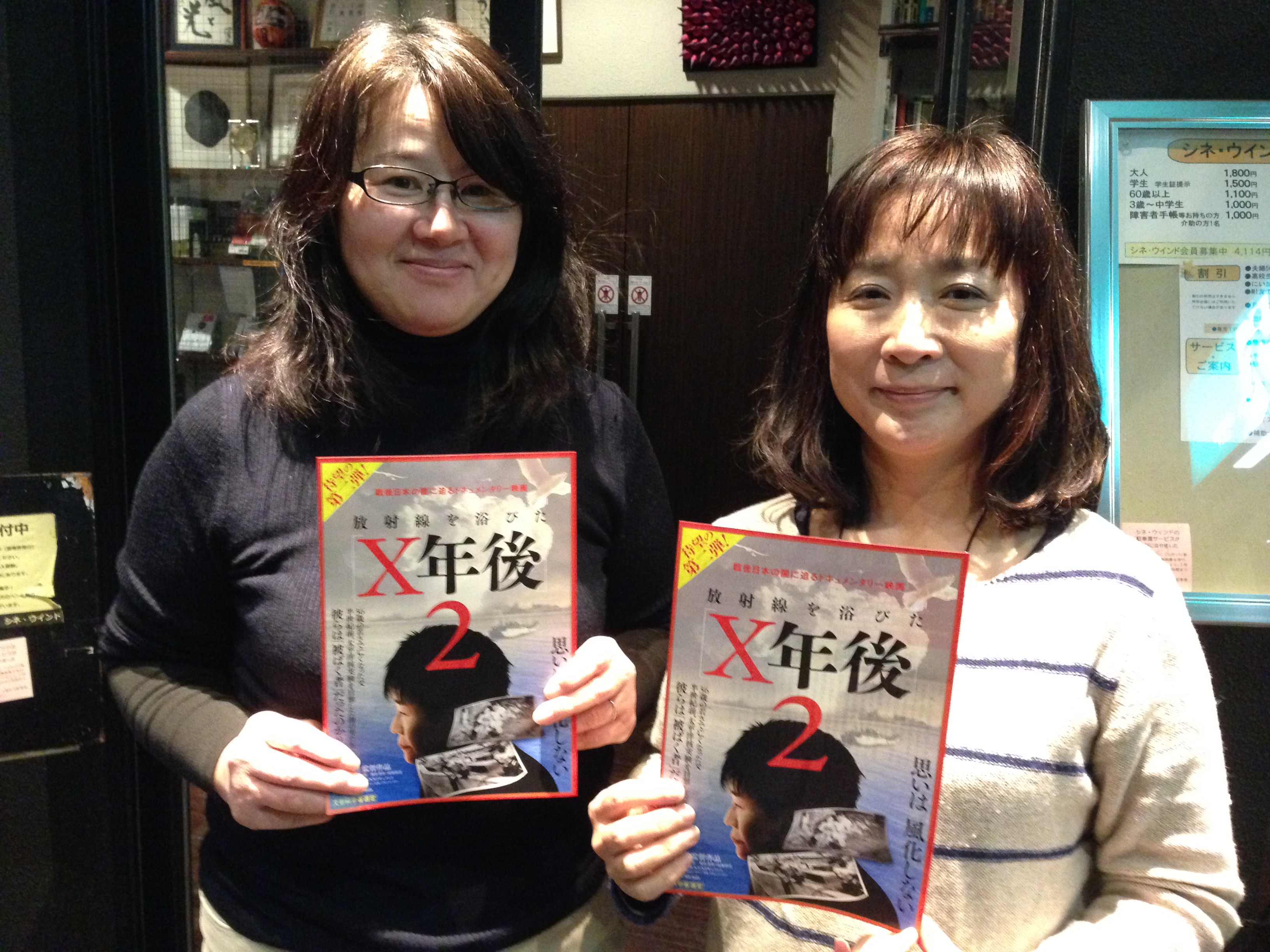 その後に行われたのが『放射線を浴びた X年後2』の上映前トーク。2週前に『日本と原発 4年後』で協力をいただいた「おらって」にいがた市民エネルギー協議会(以下「おらって」)さんに再度乙上していただきました。映画は1950~60年代にかけて南太平洋地域で行なわれた核実験が、当地のマグロ漁のみならず日本各地をも汚染した事実を伝える衝撃作。先日キャンペーンで来館された伊東英朗監督は、核実験から被曝そして安全宣言と東京オリンピック開催に至る時系列的変遷が、マグロ漁船事件と福島原発事故の時とが非常に似ている点に注目していました。そして福島原発事故の本当に被害や影響を知るためにも、先行事例としての太平洋核実験と被曝マグロ漁船との関係をしっかり調べるべきと話していました。