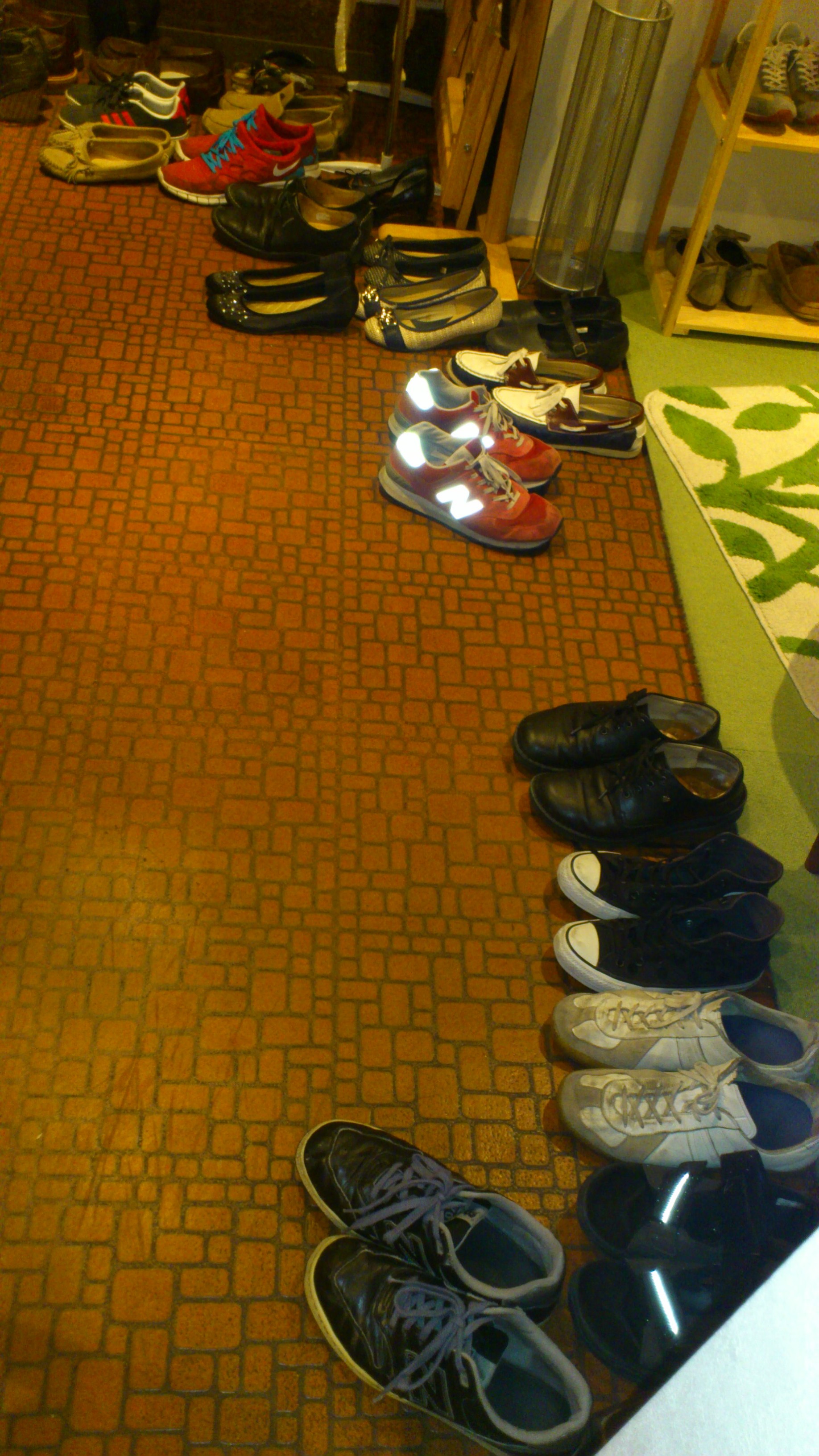 イロハニ堂は、靴をぬいで上がるスタイルのカフェです。定刻となり、たくさんの靴が並びましたよ。