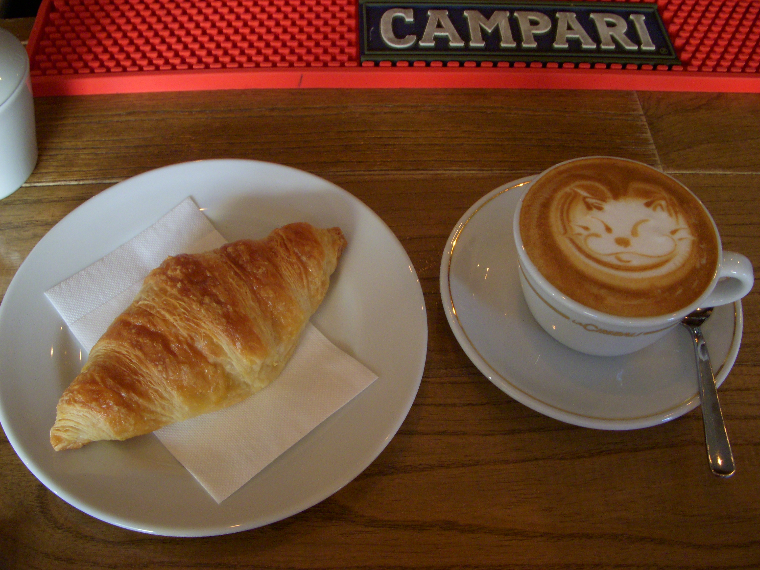 今日いただいたこのクロワッサン(ではなくコルネットという名前)、ほんのり甘くてすごくおいしかったです。