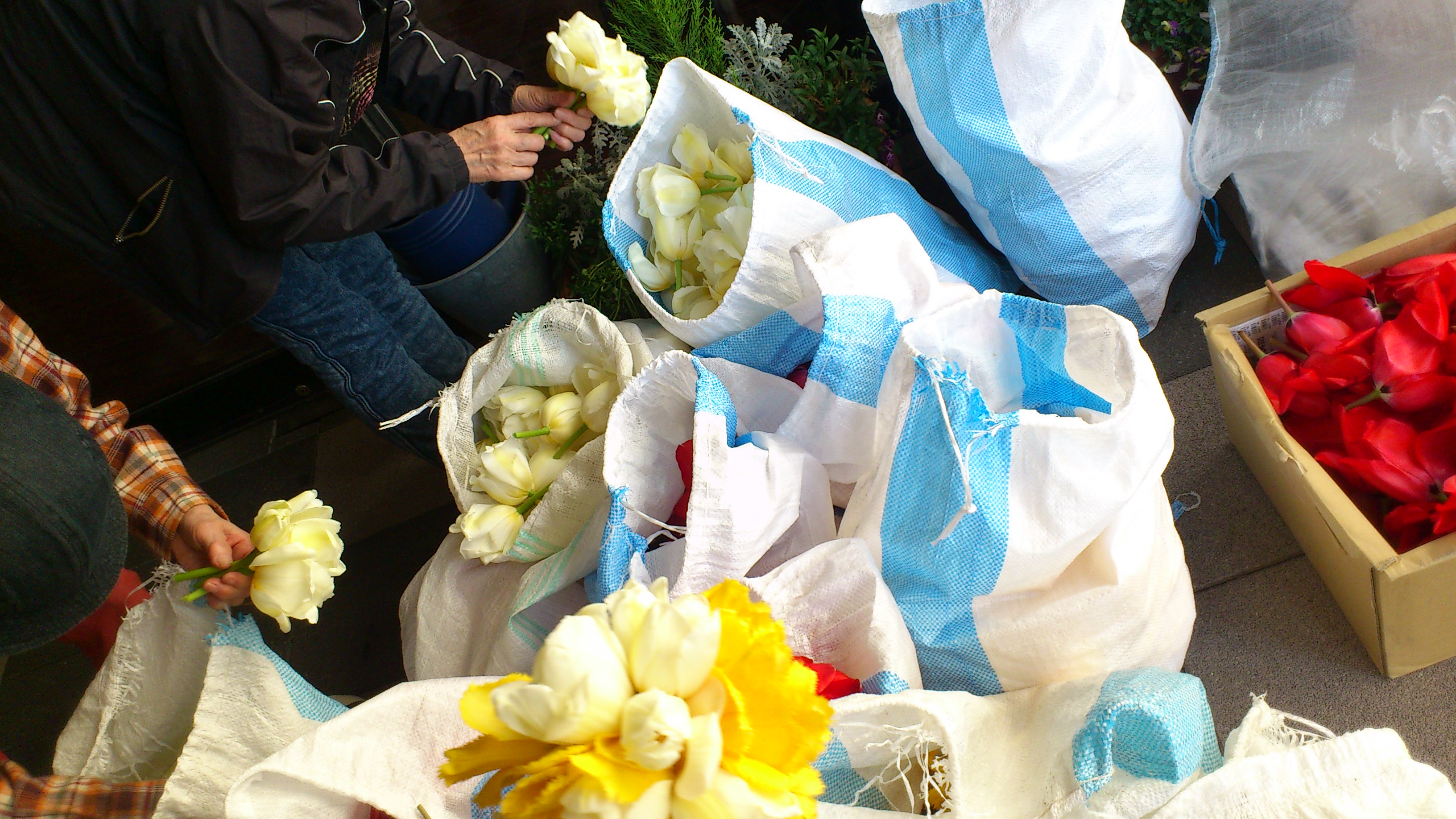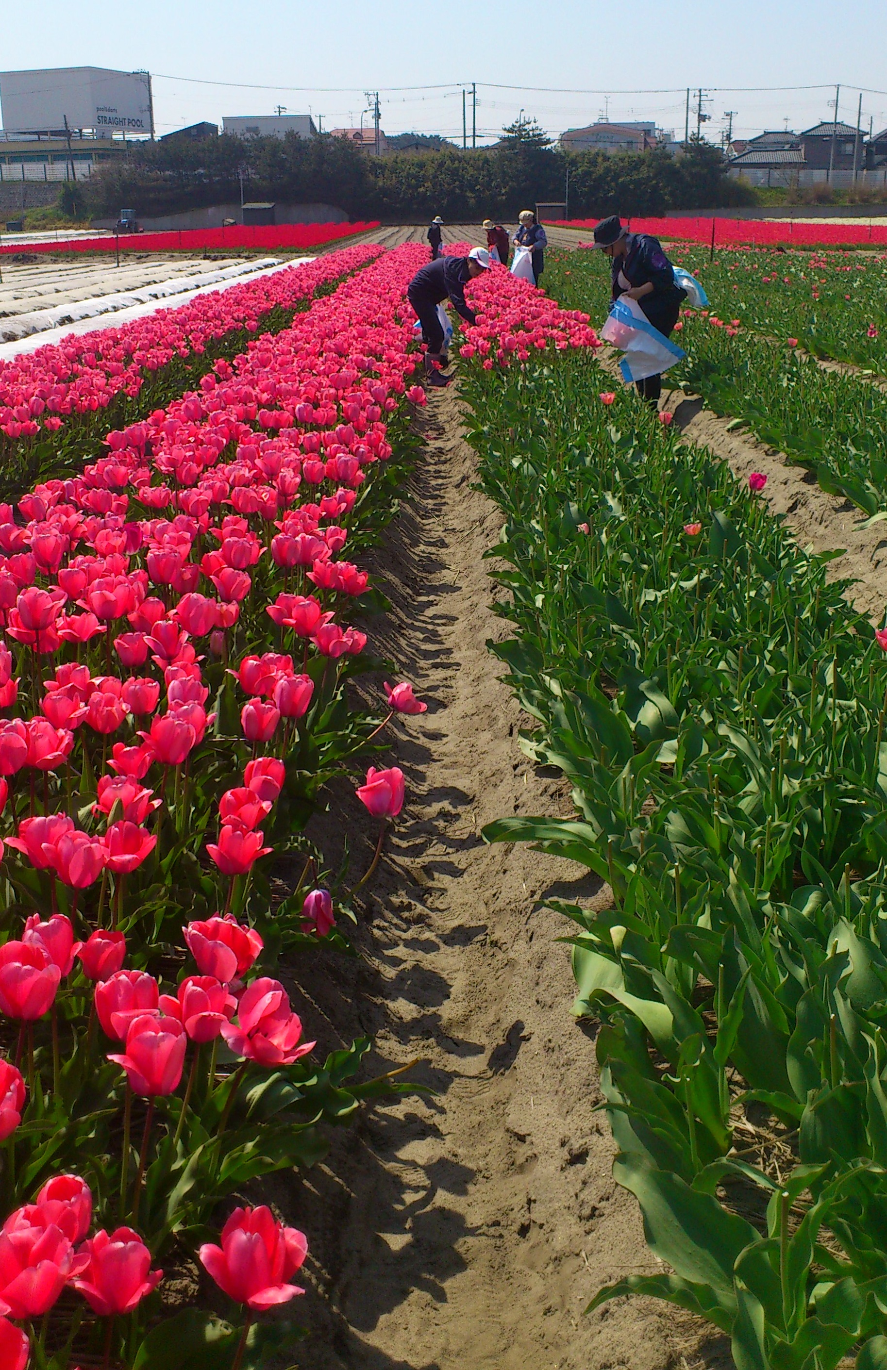 毎年恒例のチューリップの花絵作りをするべく、新潟空港近くで花摘みをしておりました。