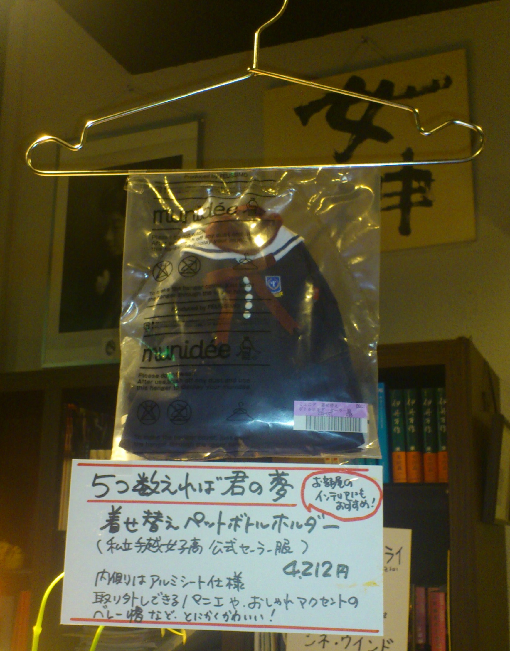 ↑ とてもよくできている! ペットボトルホルダー、というより、ミニチュアセーラー服。内側がアルミシートなので実用性ばっちりなのですが、お部屋に飾ったらかわいいかも。