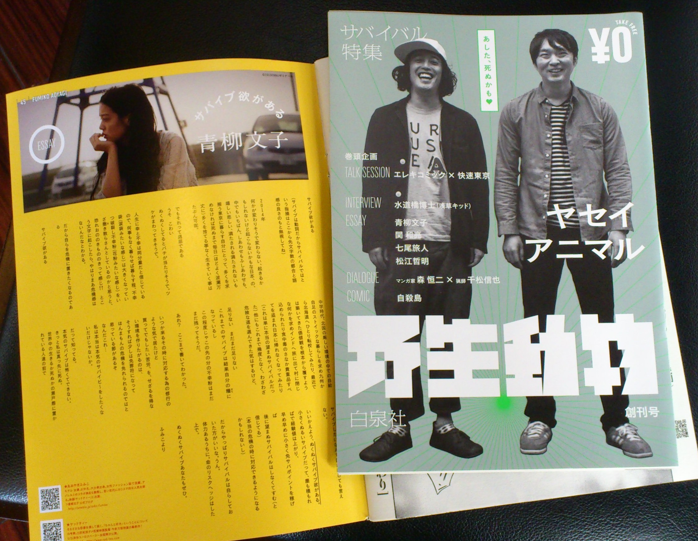 そして、ご来館の方に青柳文子さん寄稿のフリーペーパー「野生アニマル」をプレゼント。