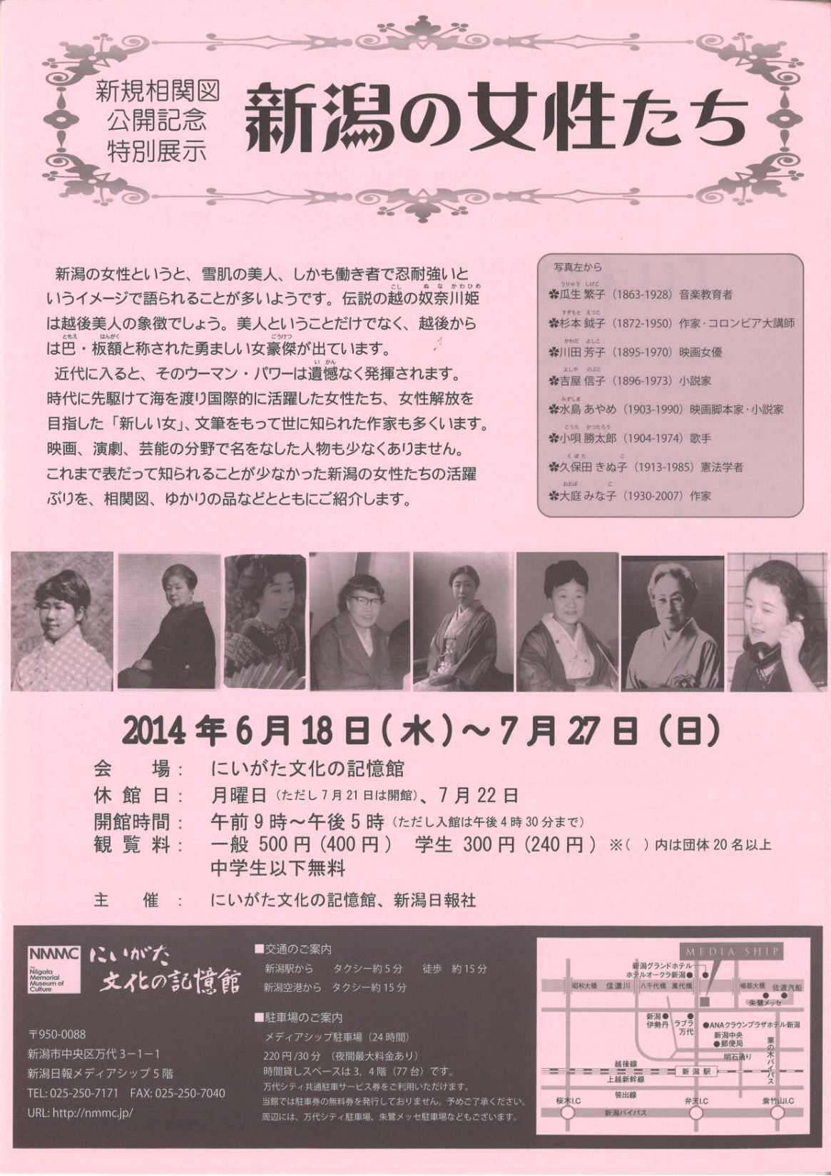 7/27まで、特別展「新潟の女性たち」を開催中で、立派な展示室で芳子さんがゆったりとした姿で振り向いています。写真は学芸員さんに送っていただきました。