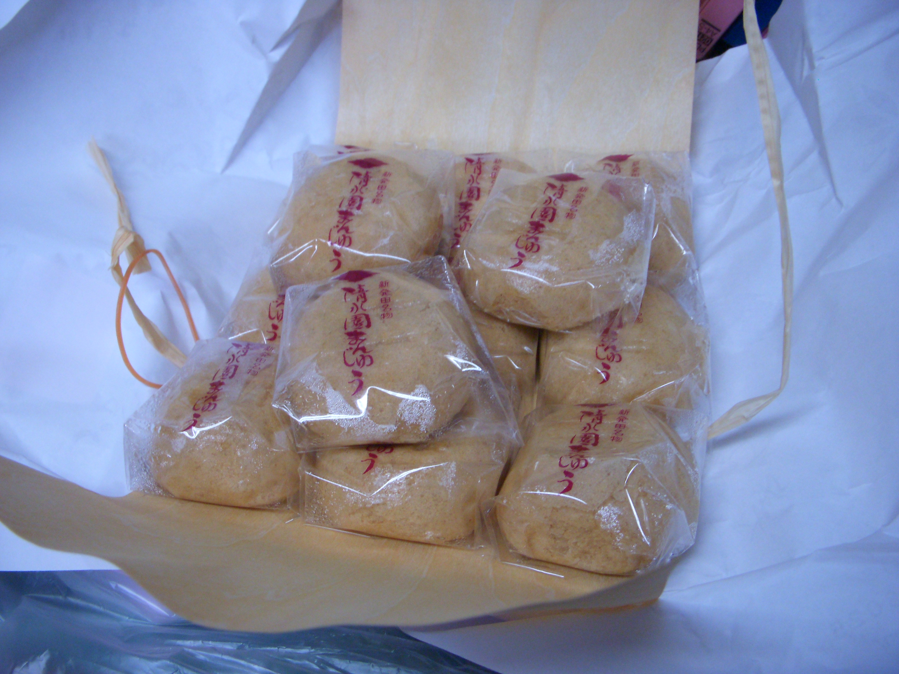 今朝「霧の中の風景」を観に来られた会員の方から、温かいおまんじゅうを頂きました。