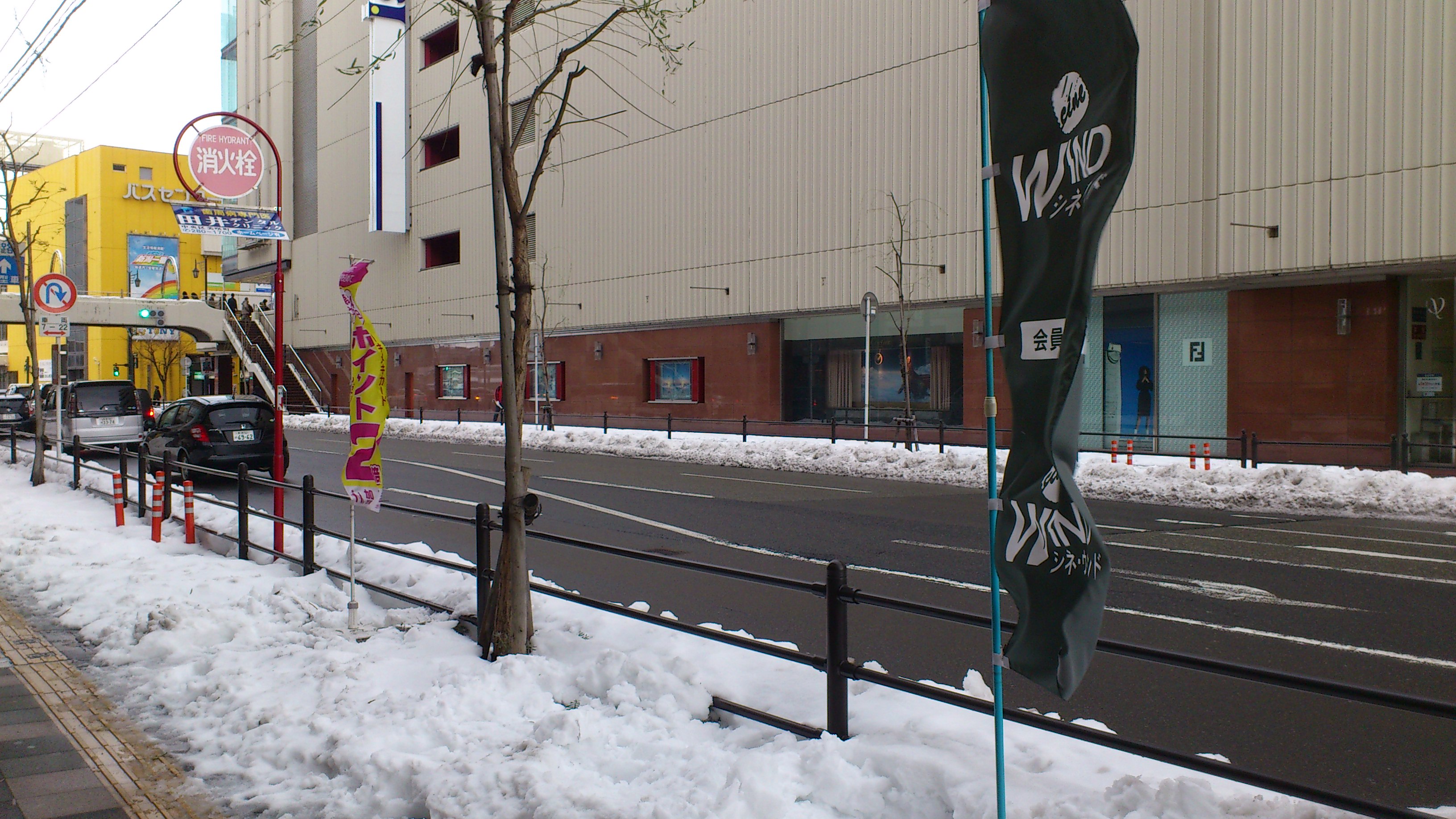 雪も落ち着いて、昨日は真っ白だった万代シテイ周辺の大きい道路や歩道はキレイに除雪してあります。
