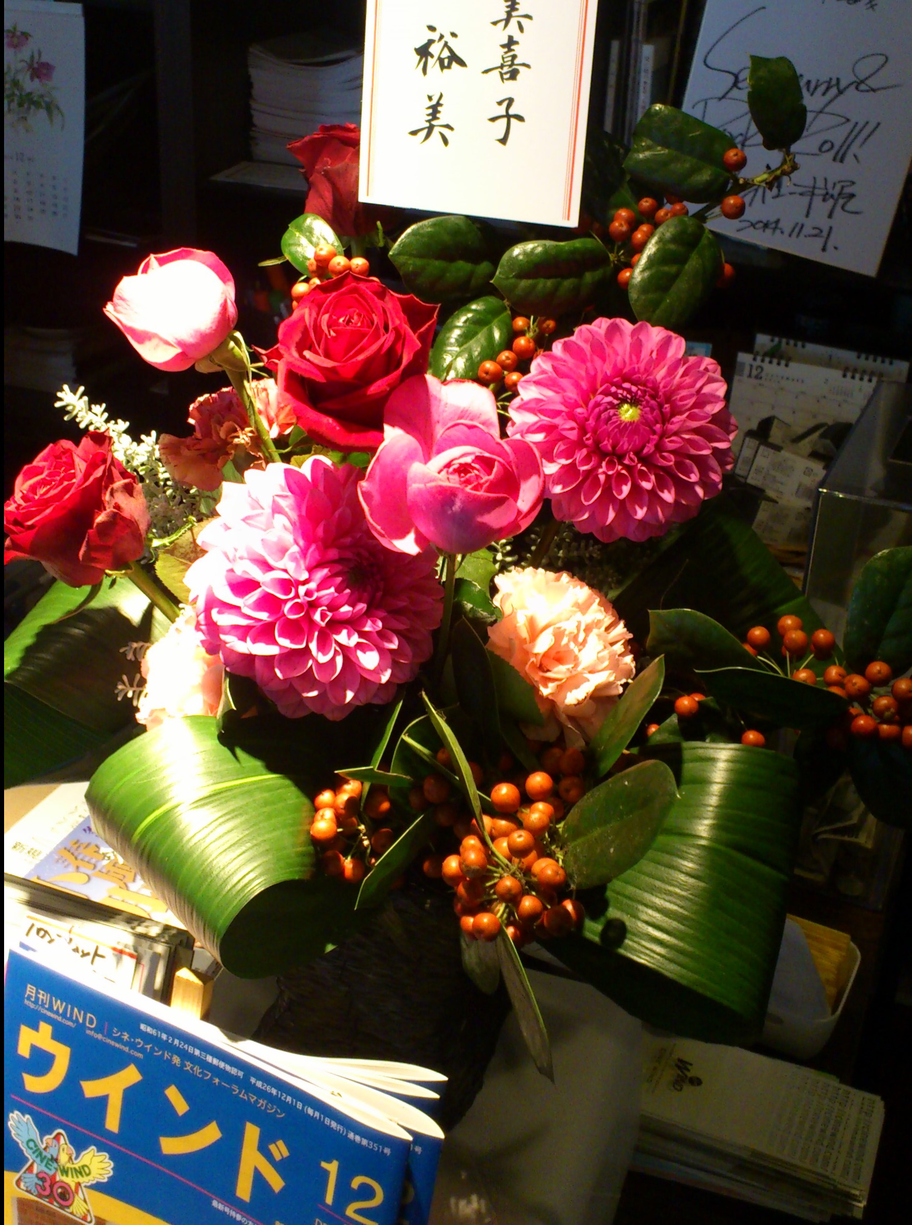 今朝、会員の方から、お祝いのお花が届きました。なんと立派な!