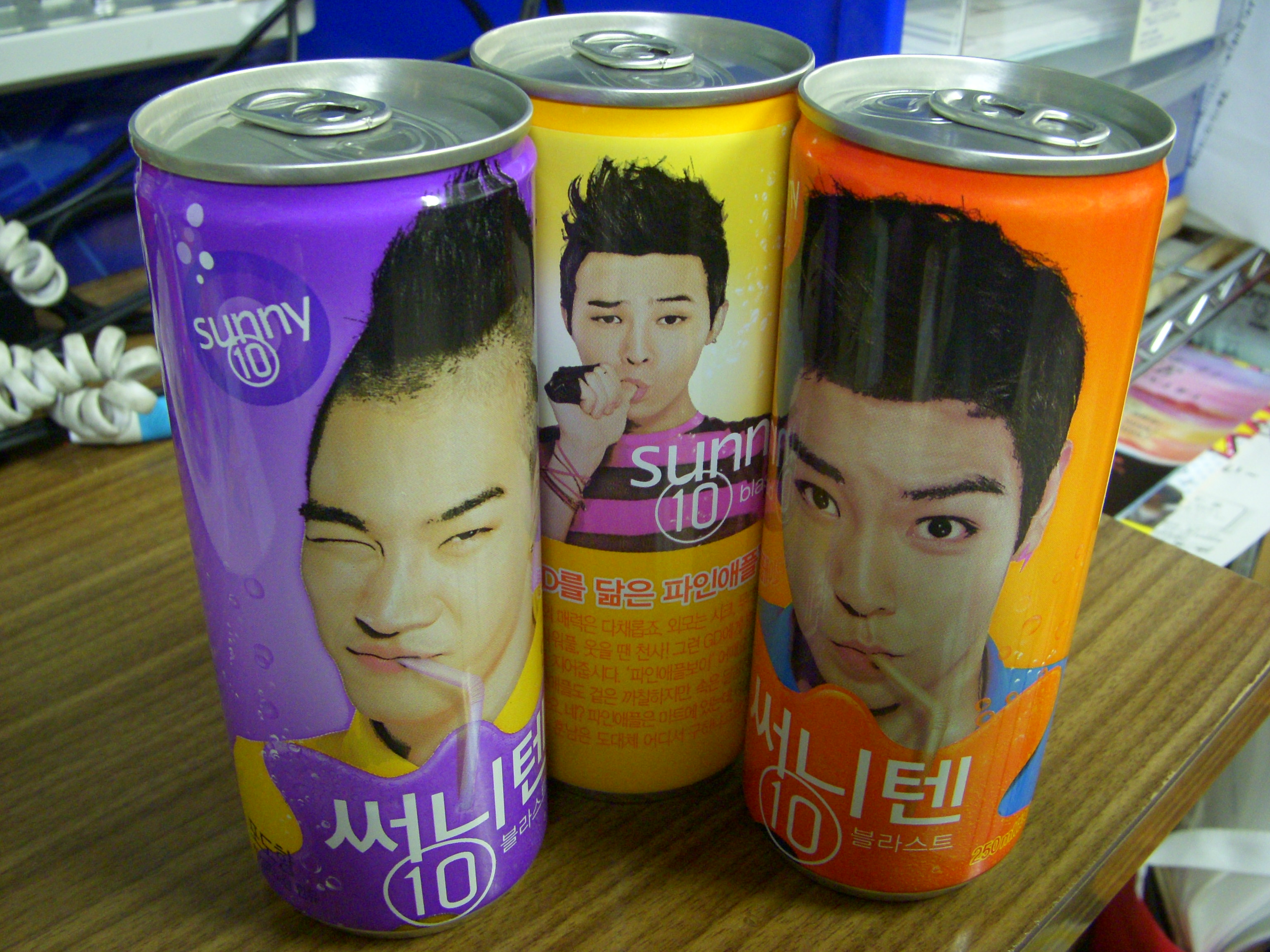 NさんのオススメでBIGBANGの絵柄の缶ジュースを買ったのですが、ハングル読めなくて何味だかわかりません…。何味なのか想像できなかった黄色い缶は飲んでみたところパイナップル味でした。