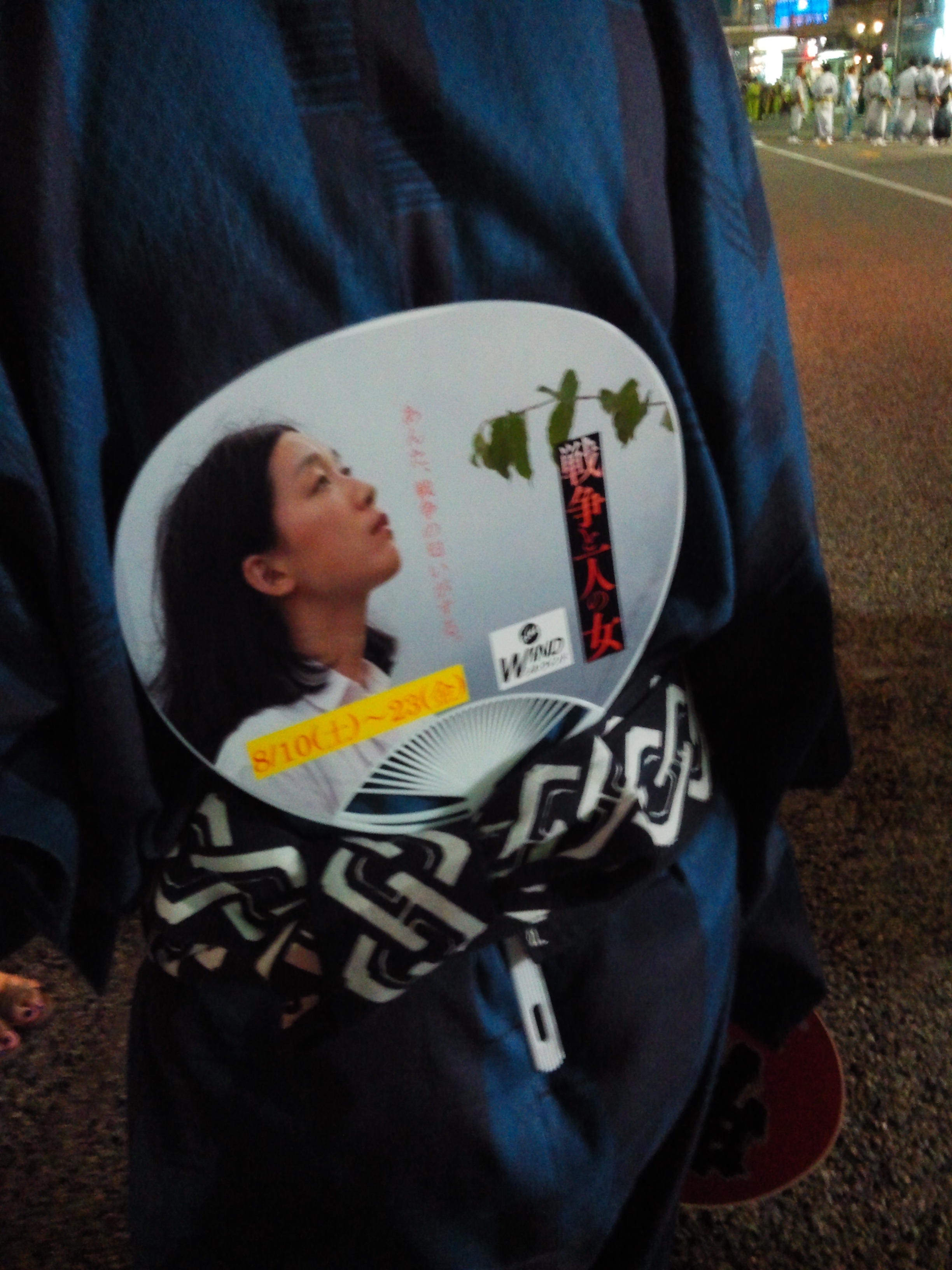 スタッフお手製の「戦争と一人の女」うちわを持って踊りました。