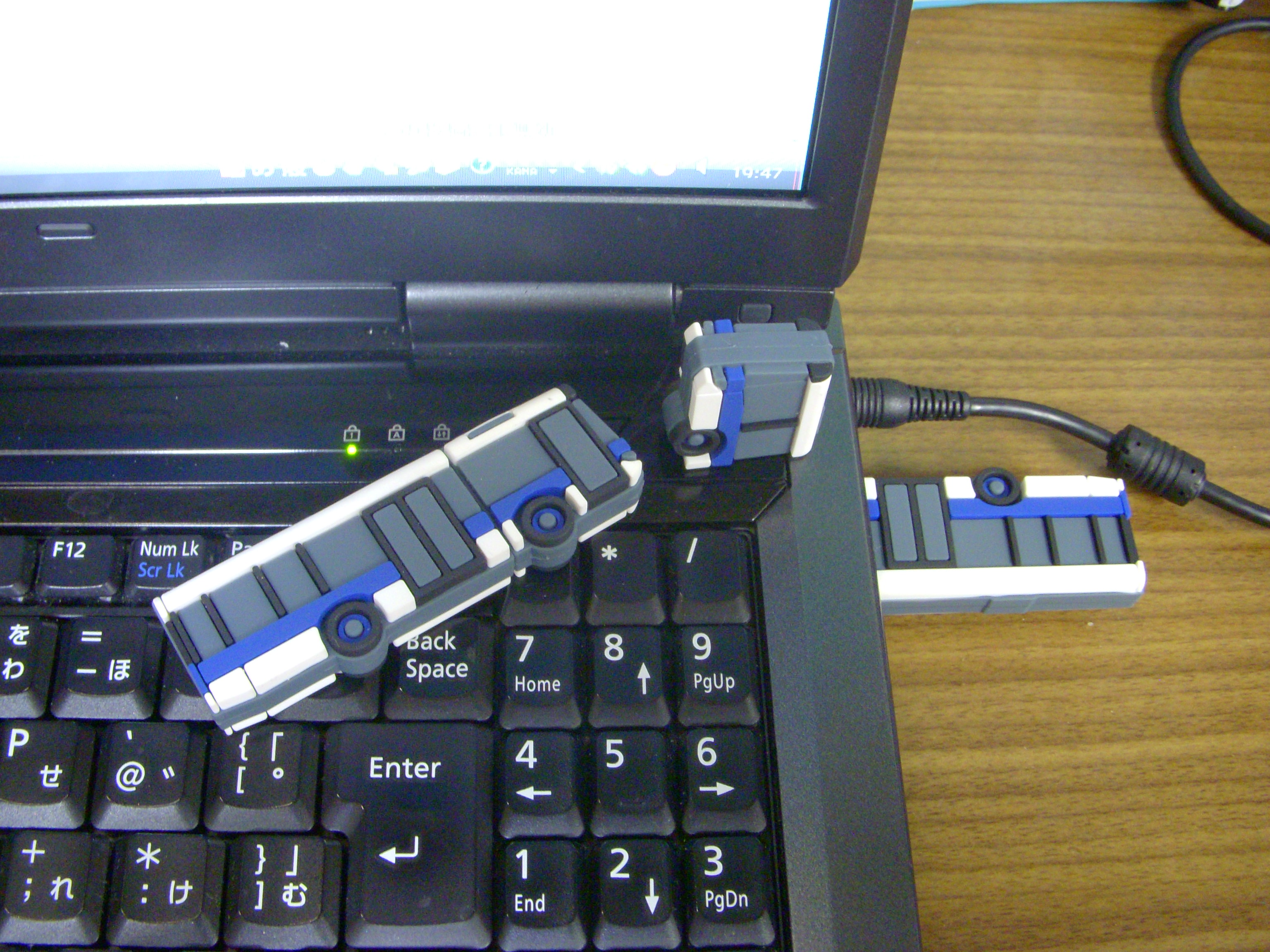 オススメしたい物販は「ウィ・アンド・アイ」のバス型USBメモリ(4GB)です。