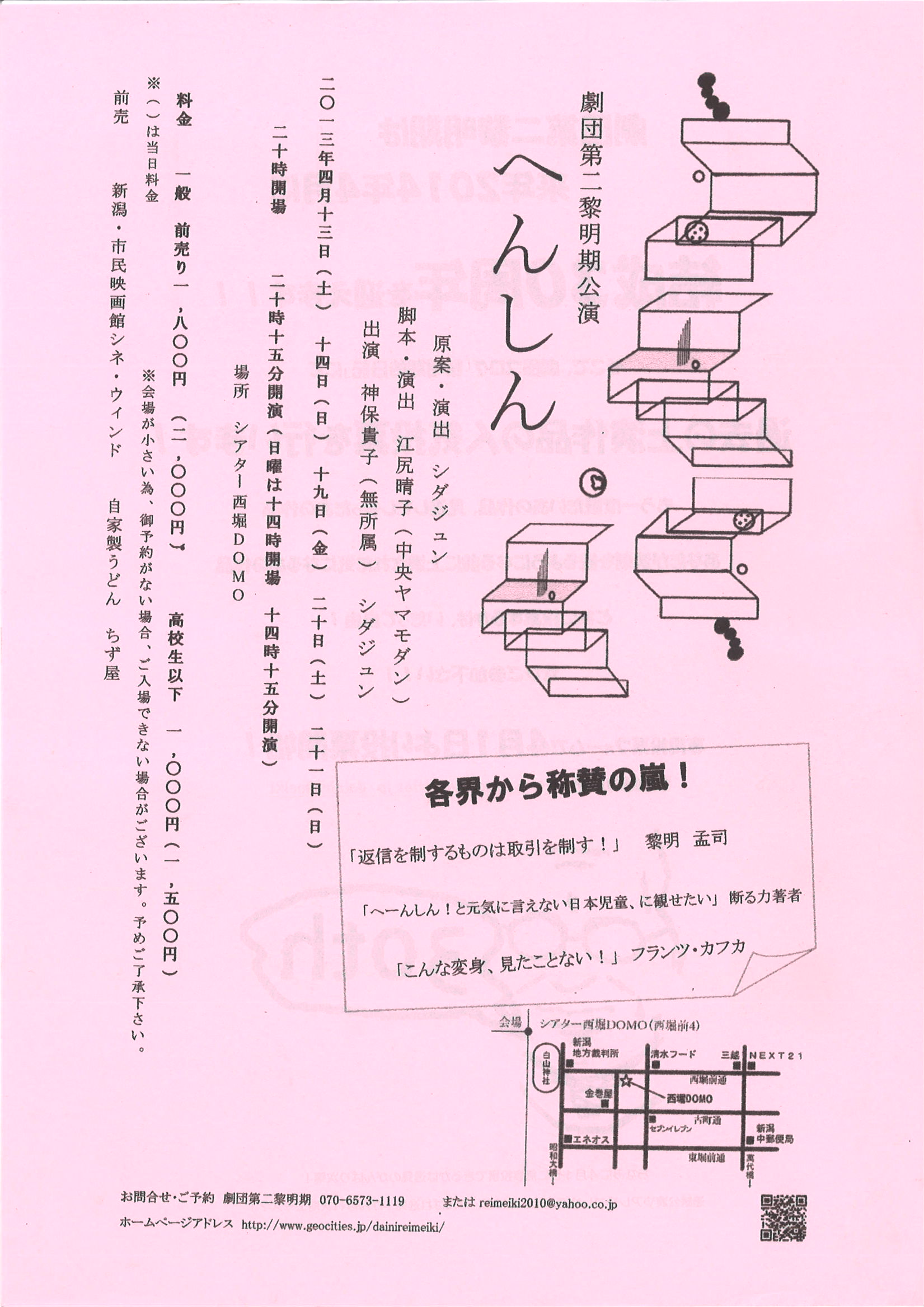 ブログ 新着情報 シネ・ウインド日記 2013年4月8日 「二郎は鮨の夢を見る」前売券 新潟県民会館さんで春の訪れを目撃しました。 ピンクですね。 新潟もいよいよ春です。 今日新潟県民会館さんへは、6月に上映の映画前売券を納品しに行ったのです。 6/11(火)~「二郎は鮨の夢を見 …