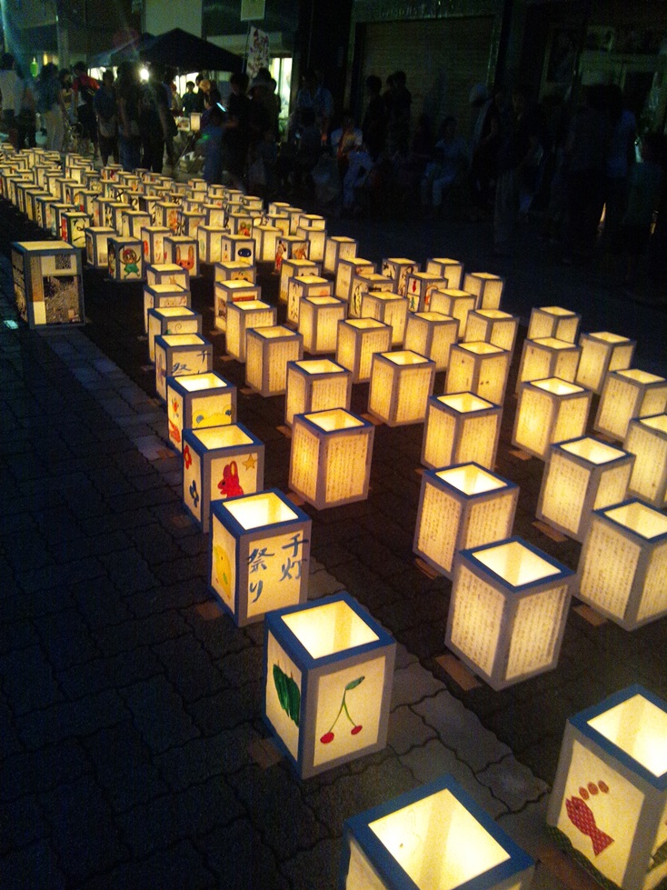 本町通の「千灯まつり」(写真)と重なったこともあってか、町はずいぶん賑わっていて、「恐怖のえんとつ村」も混んでいました。結局、小一時間待ったのですが、こういうのはあれこれ話しながら待つのも楽しみのうち。