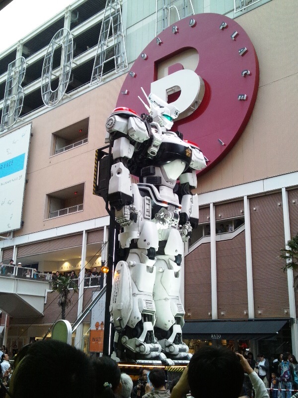 写真は、シネ・ウインドのご近所、BP2前に登場した、実物大・イングラム”(全高10m)。実写映画「THE NEXT GENERATION パトレイバー」の撮影でも使用されたものだとか。サイレンとともに立ち上がるデッキアップ、かっこよかったですよ~!!