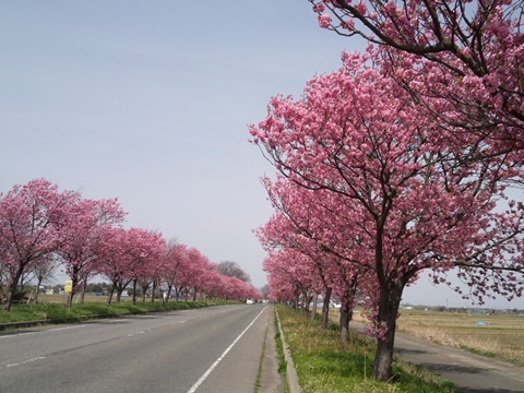 新津美術館からの帰り道、映画「陽光桜」に登場したのと同じ陽光桜が植えられている並木道「マイロード 桜の舞うみち」に立ち寄りました。