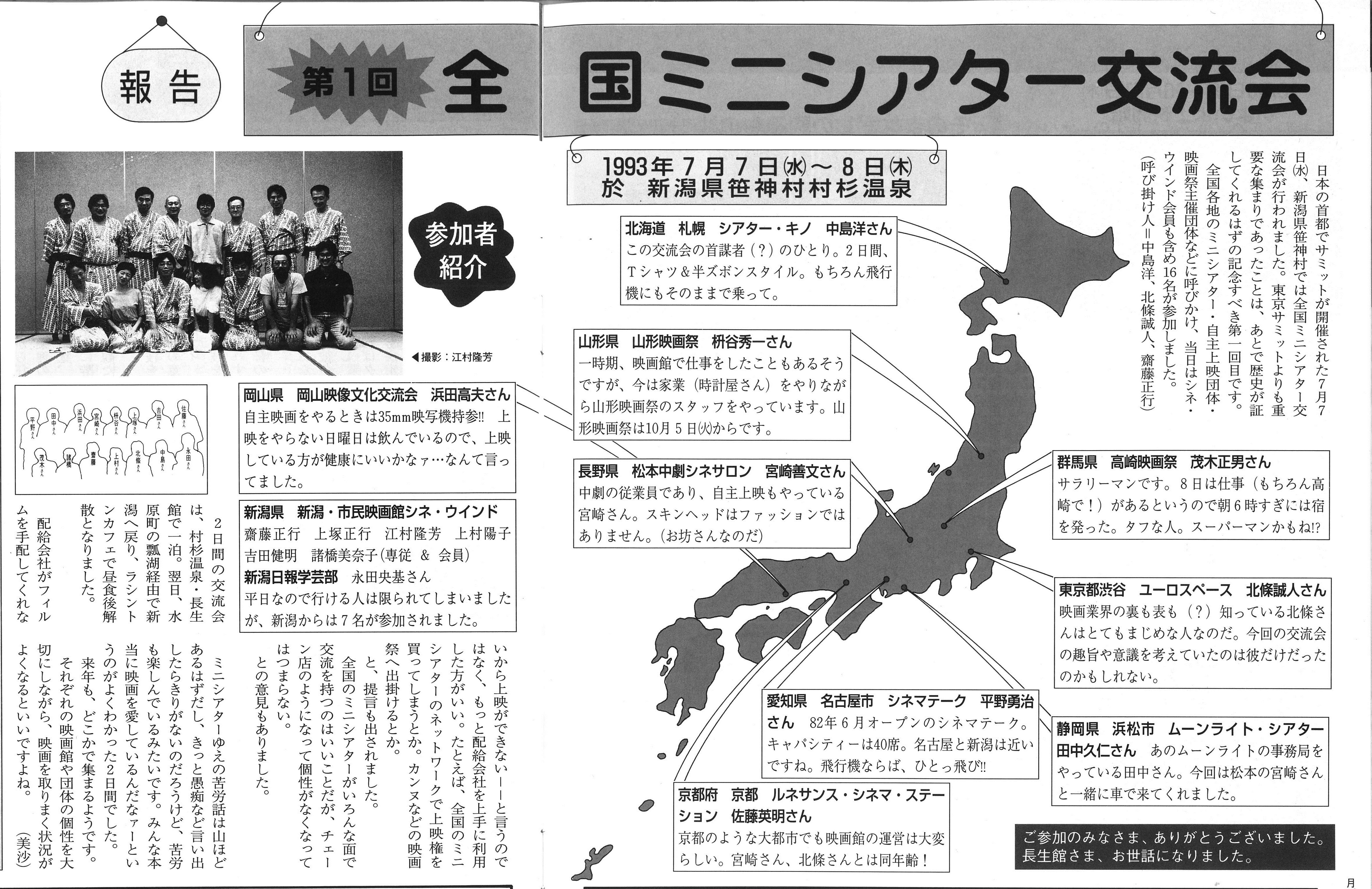 ――93年に新潟の村杉温泉で、「第1回全国ミニシアター交流会」というものが開催されています。呼びかけ人はシアター・キノの中島洋さん、ユーロスペースの北條誠人さん、シネ・ウインド齋藤正行(月刊ウインド93年9月号参照)。