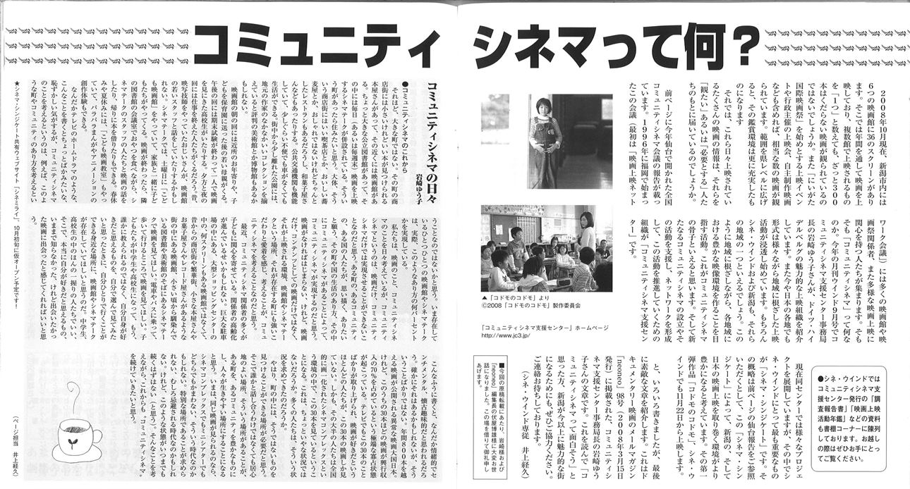 ――月刊ウインドに岩崎さんの「コミュニティシネマ」についての文章を掲載させていただいたのが08年でした(9月号、11月号)。