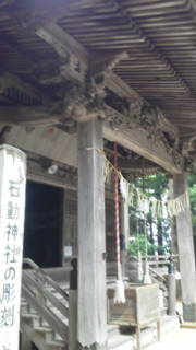 集合場所は、吉野家フォーラム集会所だった。この吉野家地区に石動神社が鎮座している。拝殿には、江戸時代の名彫刻家、石川雲蝶の傑作がのこされている。神社は、苔むした石段を四百段も踏みしめて、息を切らして登った高台に鎮座していた。