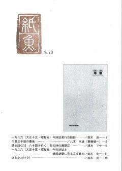 「市島三千雄を語り継ぐ会」からの例会案内。9月は「詩誌目録「紙魚」を終えて」と題して、1926年から1995年までの70年間に新潟県で刊行された詩誌・詩集を収集した目録誌「紙魚(しみ)」を70号で完結させた鈴木良一さんが話をするとのこと。