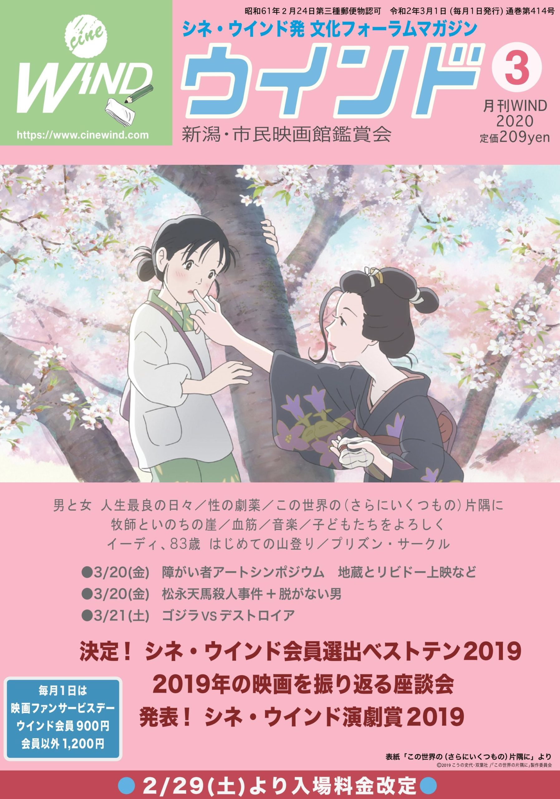 なお、シネ・ウインドは2020年2月29日より入場料金を改定いたします。何卒ご理解ご了承いただけますようお願い申し上げます。