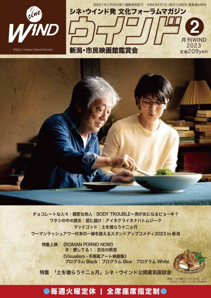 次号は「シネ・ウインド会員選出ベストテン2022」の結果発表です。お楽しみに。まだまだ改良の余地のある誌面ではありますが、少しずつ進化していけたらいいなぁと思っております。編集部員や編集部の活動を手伝ってくださる方を募集中です! お問合せください。(月刊ウインド編集部 たけい)