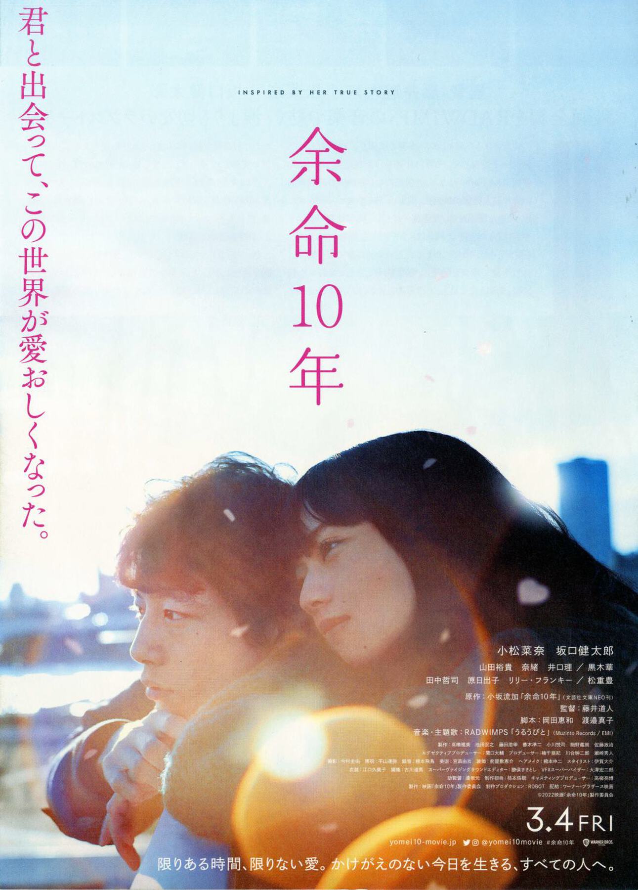 二十歳で難病を発症し、余命10年となった茉莉(まつり)に小松菜奈。茉莉と恋に落ち、その運命を大きく変える和人(かずと)を演じたのは坂口健太郎。初共演となる最旬実力派の二人が、小説の文庫化を待たずして亡くなった著者の想いを引き継ぎ、「10年」の物語を全身全霊で演じる。また、二人の友人役に山田裕貴と奈緒が共演。茉莉の家族に黒木華、松重豊、原日出子。さらに田中哲司、リリー・フランキー、井口理など、豪華俳優陣が集結。