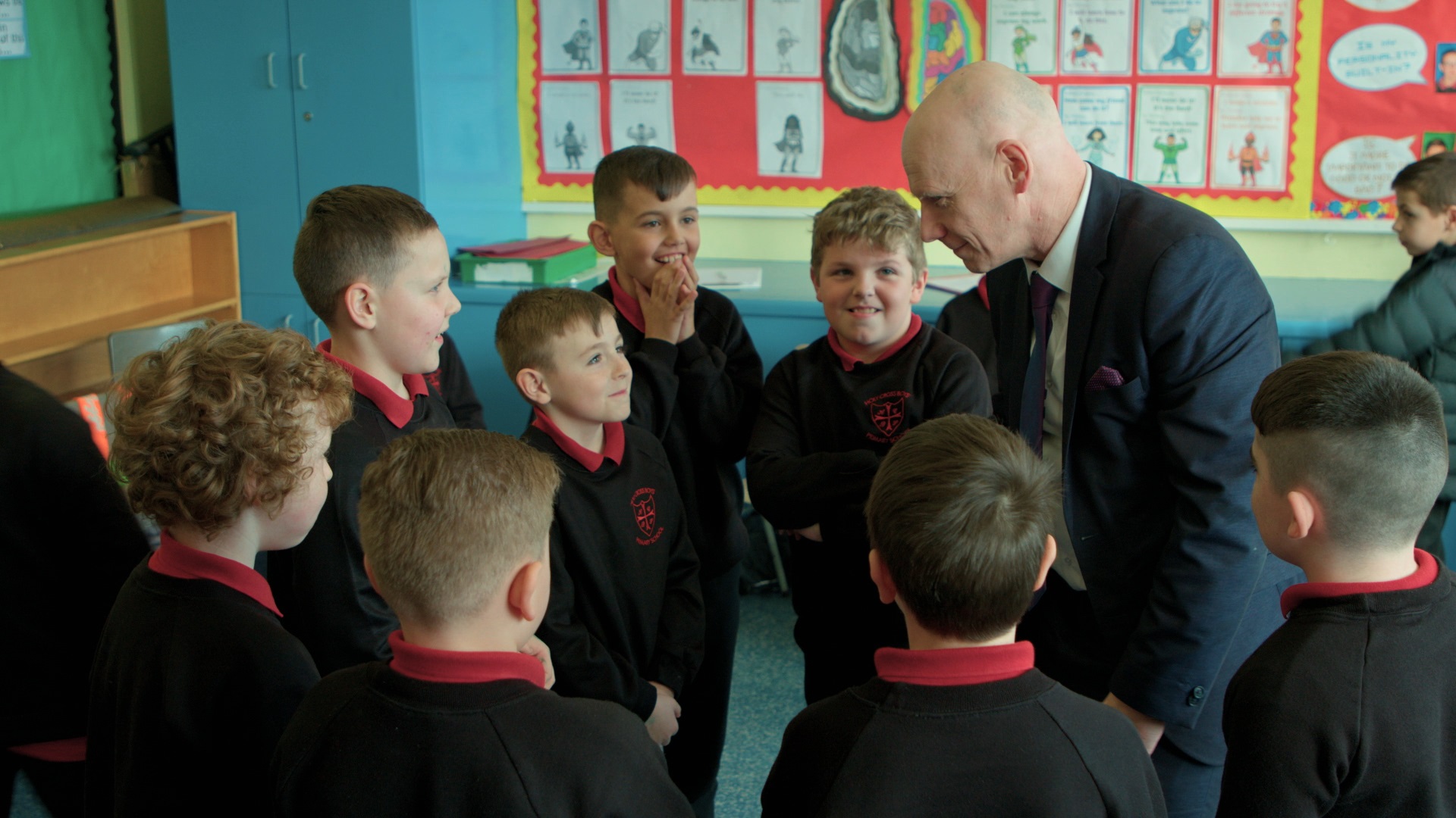 北アイルランド、ベルファストにあるホーリークロス男子小学校。ここでは「哲学」が主要科目になっている。エルヴィス・プレスリーを愛し、威厳と愛嬌を兼ね備えたケヴィン校長は言う。「どんな意見にも価値がある」と。彼の教えのもと、子どもたちは異なる立場の意見に耳を傾けながら、自らの思考を整理し、言葉にしていく。授業に集中できない子や、喧嘩を繰り返す子には、先生たちが常に共感を示し、さりげなく対話を持ちかける。自らの内にある不安や怒り、衝動に気づき、コントロールすることが、生徒たちの身を守る何よりの武器となるとケヴィン校長は知っている。