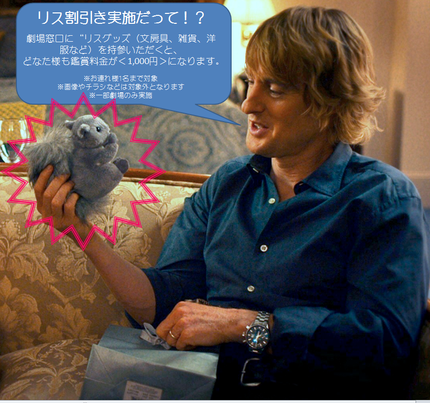 入場料お支払い時に 【リスグッズ(文房具、雑貨、洋服など)】 をご持参いただくと、どなた様も料金が<1,000円>になる【リス割引】を実施します。