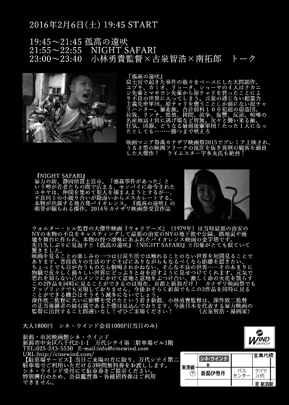 2/6(土)「孤高の遠吠」「NIGHT SAFARI」上映&トーク