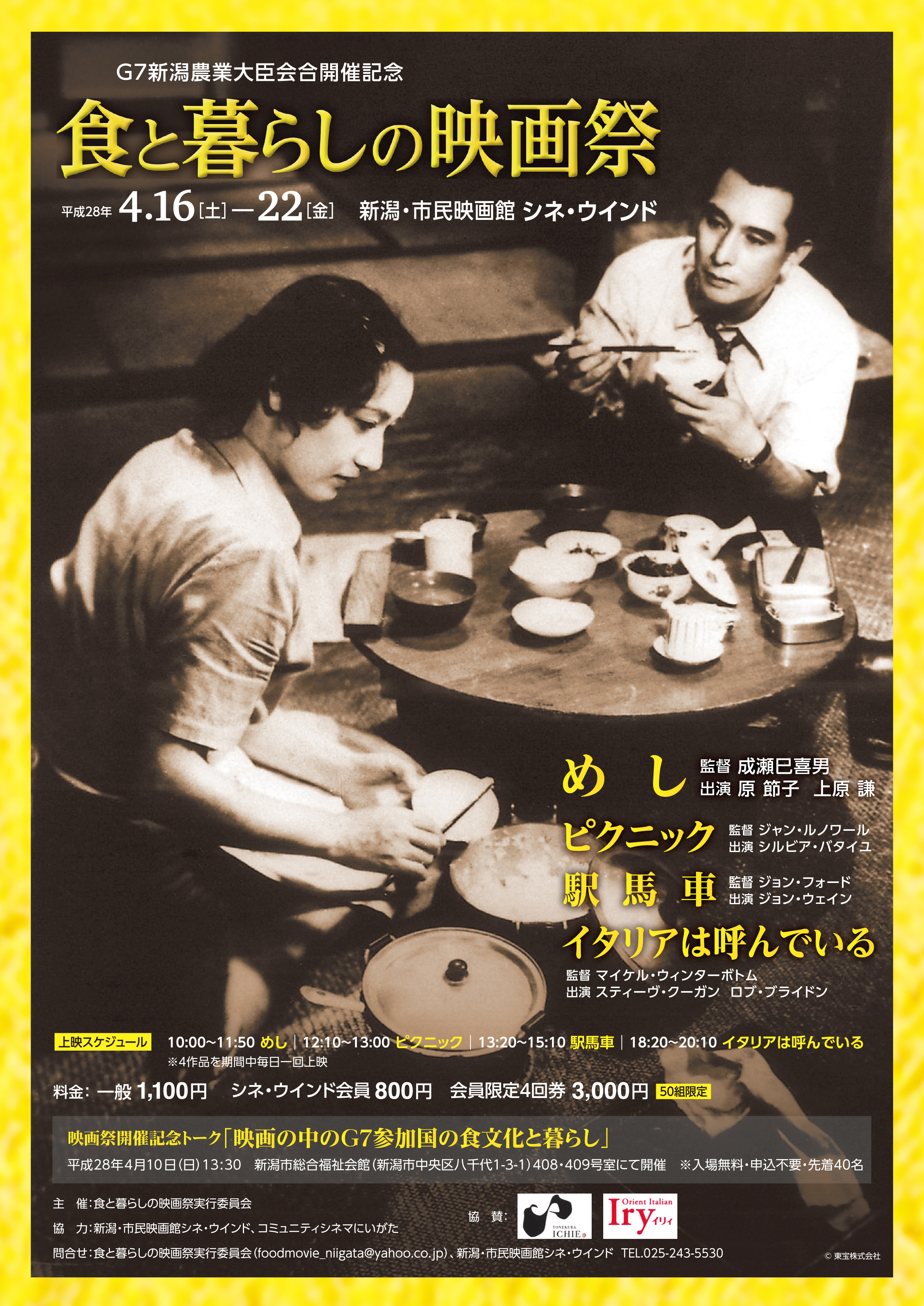G7新潟農業大臣会合の開催にあたり、G7参加国の地域性や歴史性が食事描写からうかがえる名作映画を上映します。この映画祭が各国の食文化や映画文化への関心を持つきっかけになることを願っています。