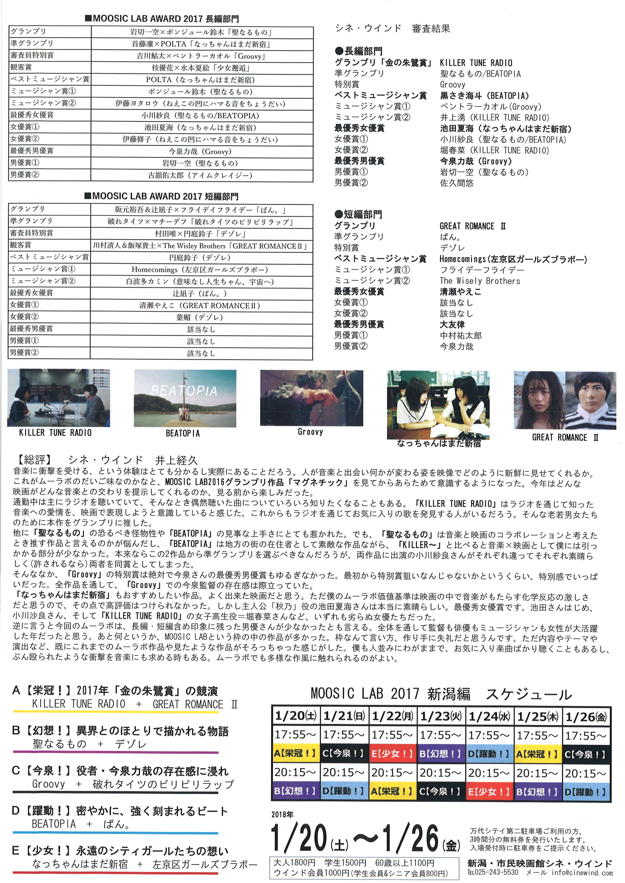 MOOSIC LAB2017の中から、シネ・ウインド支配人・井上のセレクトで上映する【新潟編】です。
