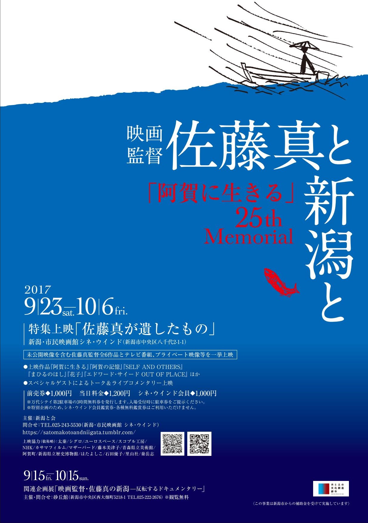 阿賀野川周辺で撮影され、語り継がれる伝説のドキュメンタリー映画『阿賀に生きる』公開から25年。監督・佐藤真は2007年に49歳で亡くなりましたが、生きていれば60歳になるこの秋に、彼と新潟との関係に焦点をあて、映画の上映、トークイベント、関連展示、音楽会と多彩なメモリアル企画【映画監督 佐藤真と新潟と】を開催します。