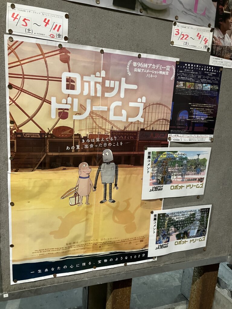 と、ここまで『ロボット・ドリームズ』の宣伝のつもりで書き始めたこの文章も、薄々気付いてはいたけれど、話の枕の方が長くなってしまったことは否めない。けれどもあくまで本編は映画なのでぜひとも劇場でご覧いただきたい。当館上映初日は有難いことに大盛況!上映期間は4月18日(金)まで。席が無くなる前に未鑑賞の方も再鑑予定の方も劇場へお急ぎください!!