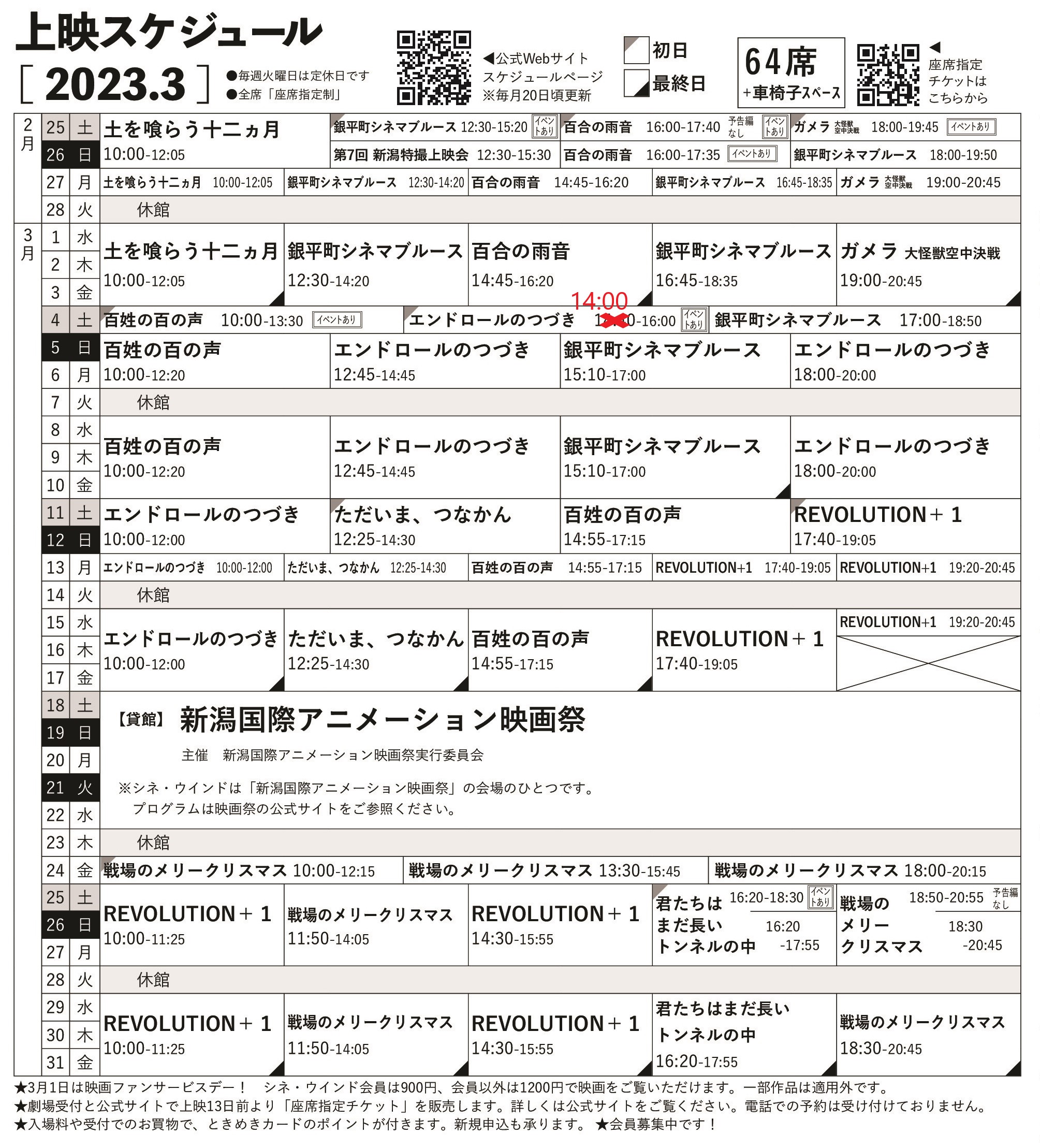 新着情報 3/4(土) エンドロールのつづき シネ・ウインド 月刊ウインド3月号 誤記訂正 開始時刻 2023年2月27日 ★『エンドロールのつづき』3/4(土)スケジュール誤記訂正 月刊ウインド3月号に掲載し、本日16:00頃まで当館webサイトで掲示していた上映開始時刻に誤記がありました。お詫びして訂正いたします。 3/4(土) 『エンドロールのつづき』上映開始時刻正 14:00~誤 14:40~