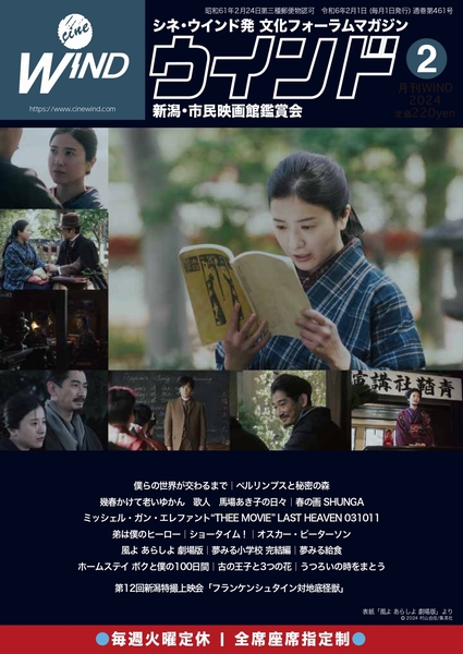 月刊ウインド Noism サウンドトラック隊の映画音楽講座 フィシスの波文 吉高由里子 小さな日々 新潟特撮上映会 月刊ウインド 村本大輔 編集部員募集中 花腐し 荒井晴彦 風よあらしよ劇場版 鼓童 2024年1月23日 月刊ウインド2024年2月号(461号)内容紹介 ABOUT 2024年2月1日発行|定価220円|B5判 「風よ あらしよ 劇場版」上映は2月10日から3月1日の3週間です。初日は上映後トークイベントあり。ご期待ください。 「夢みる小学校 完結編」「夢みる給食」「ホー …