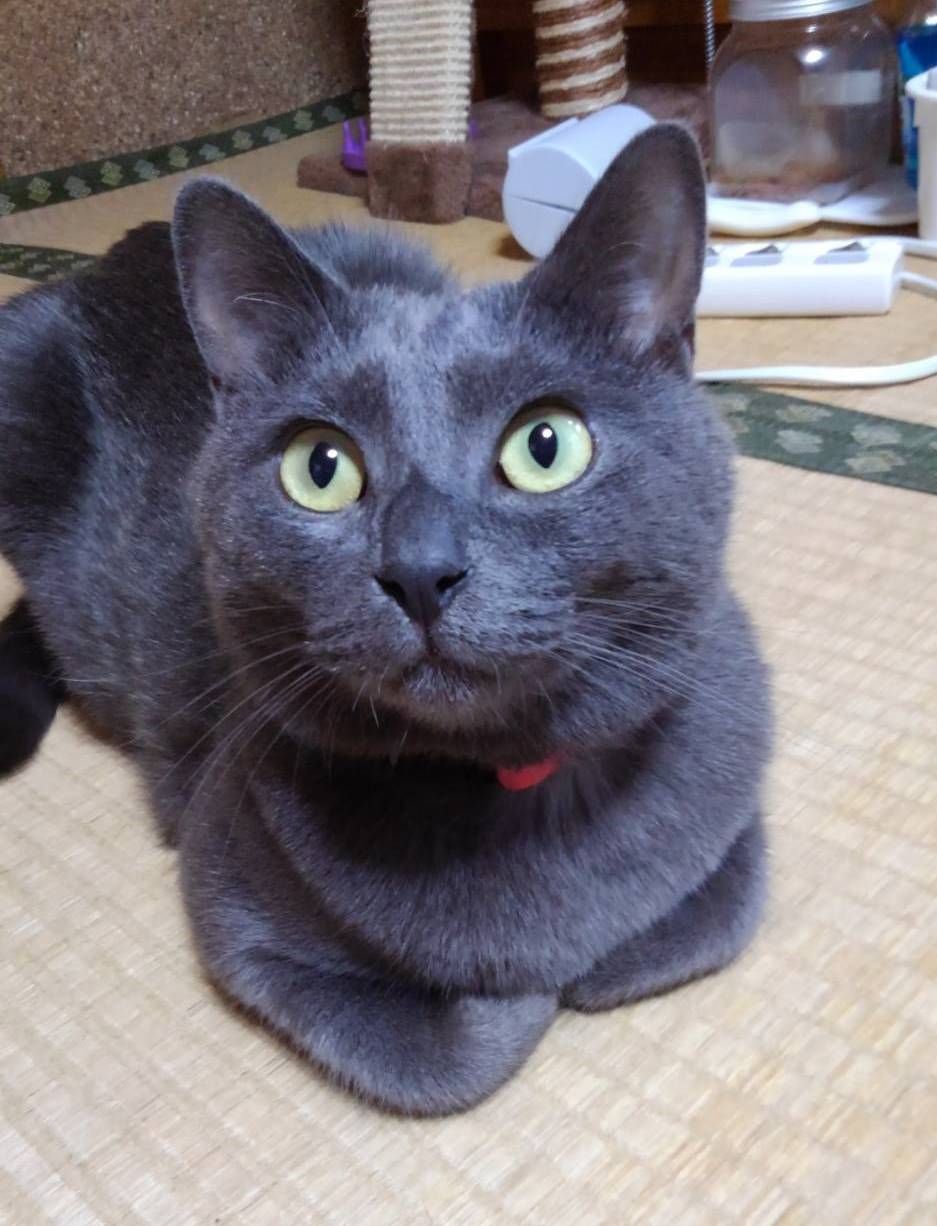 チロとの出逢いは約4年前、友達の犬の動物病院の、里親募集のブログでした。7匹のうちの1匹で、生後1ヵ月半の全身グレーのメスでした。ちょっと見、血統証付きのような感じで、初めての人には「ロシアンブルーですか?」とよく聞かれます。そのたびに、「いえいえ、保護猫です」と嬉しそうに訂正しています。
